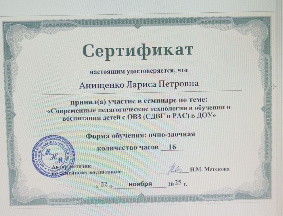 Удостоверение участника Всероссийского образовательного марафона для работников дошкольной сферы образования